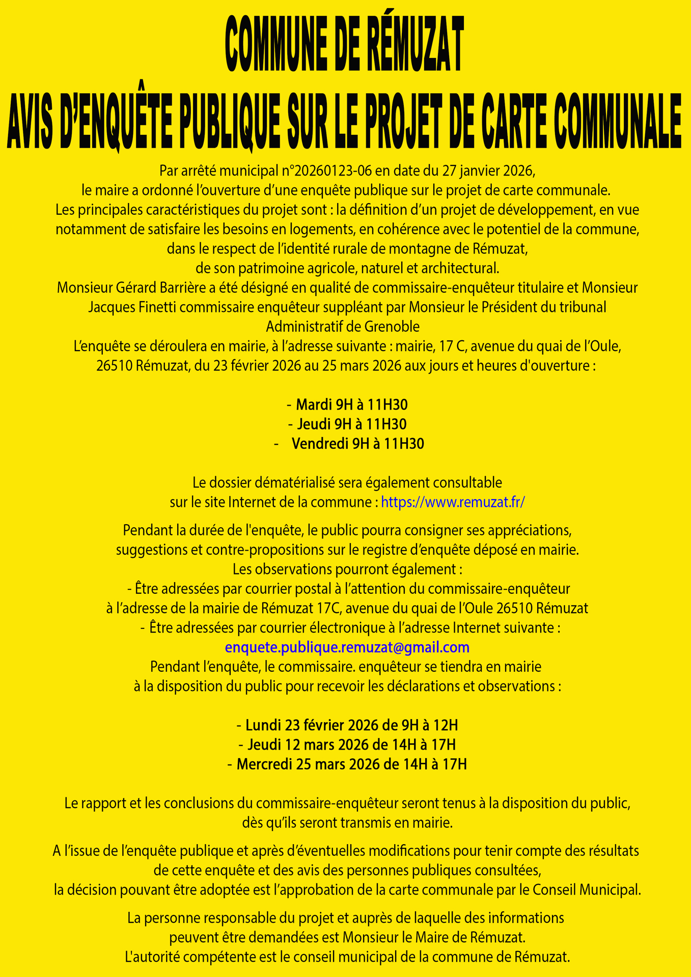 AVIS D'ENQUÊTE PUBLIQUE SUR LE PROJET DE CARTE COMMUNALE